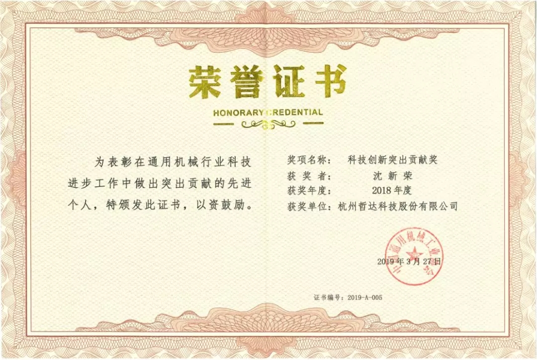 期間,隆重舉行了"2017、2018年度中國通用機械行業科技進步貢獻獎"表彰儀式,哲達科技董事長沈新榮博士憑借在通用機械行業科技工作中所做出的突出貢獻,榮獲“中國通用機械工業協會2018年度科技創新突出貢獻獎”。