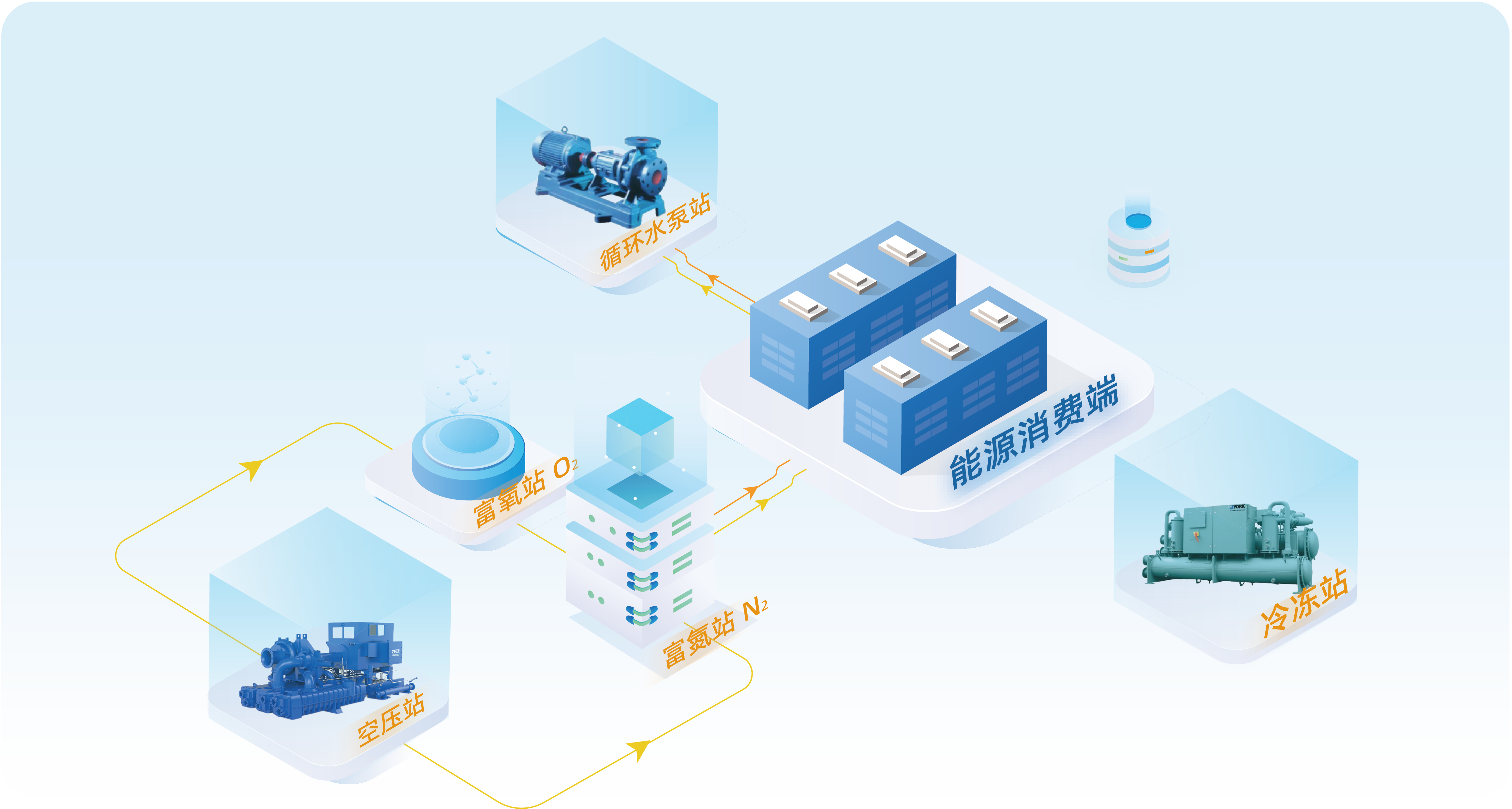 一鳴生物能源站 以能源站一站式服務的理念,將空壓系統、冷凍站系統和循環水系統整體打包建設,確保整個能源站達到一級能效水平。 在設計階段,實現能源站全站布局和管網的優化,為能源站的高效運行提供基礎條件; 在運行維護階段,實現能源站一站式智能管控、智能診斷和智能運維,確保能源站的整體運行能效和安全; 在商模式上,提出能效保證型的EPC模式,在交鑰匙的同時,確保整站的運行能效達到合同指標。